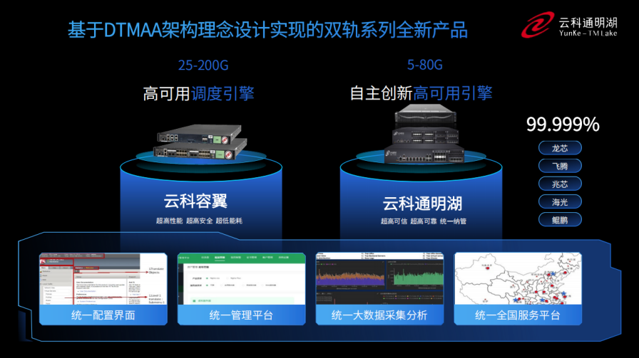 同时,为了更好的适配双轨超高可用架构,联动支付推出了容翼系列和云科通明湖信创系列两大应用交付控制器产品。